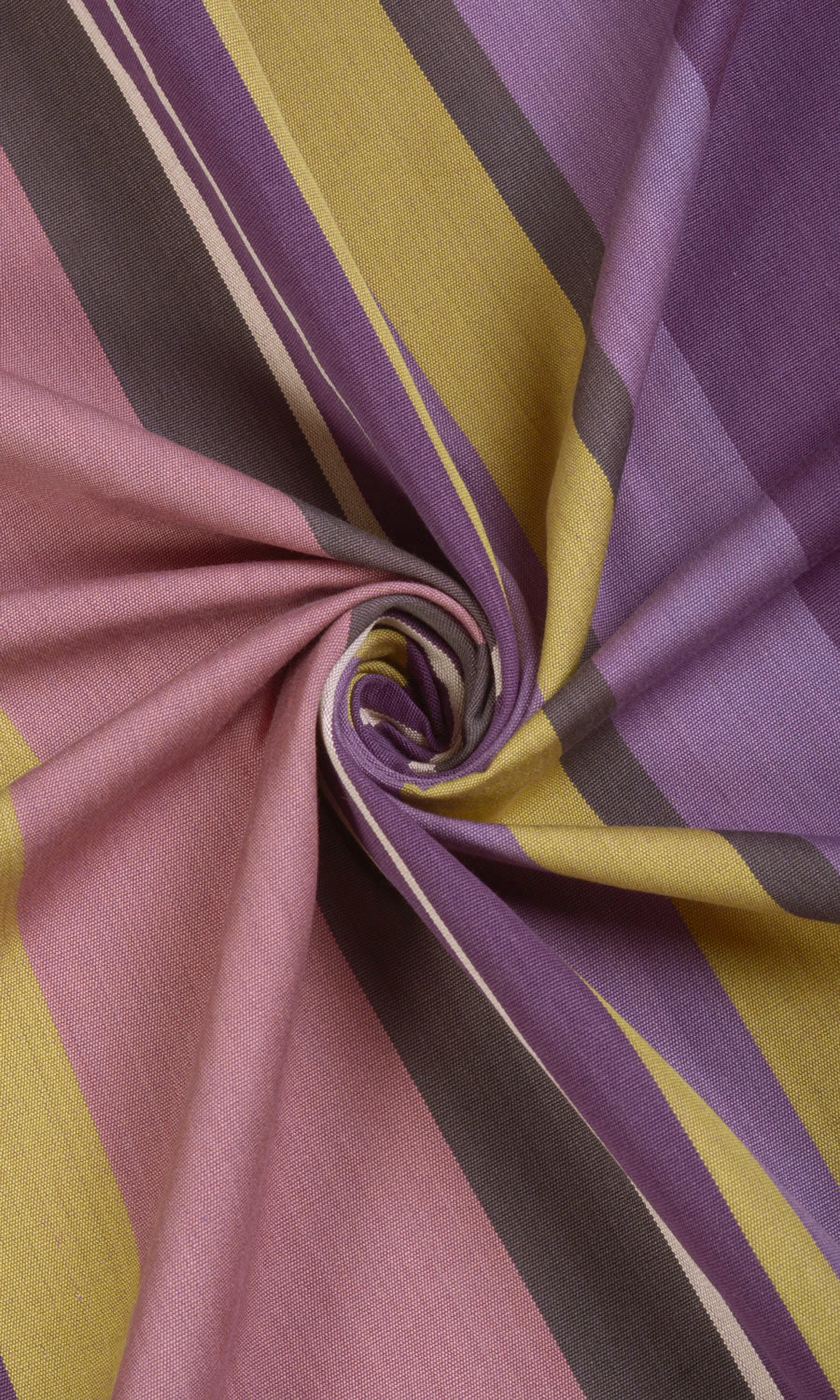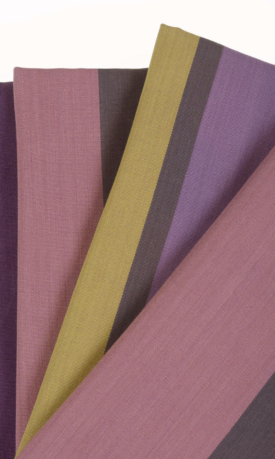 Castletown's pink and purple stripes, highlighted by muted brown, bring a vibrant yet balanced energy to any room. The lively pink and purple tones are beautifully and strategically grounded by the warm brown accents. The bold striped pattern in the lively palette brings personality and fun, while the soft pure cotton base ensures a comfy space for allergy-prone members of the household.