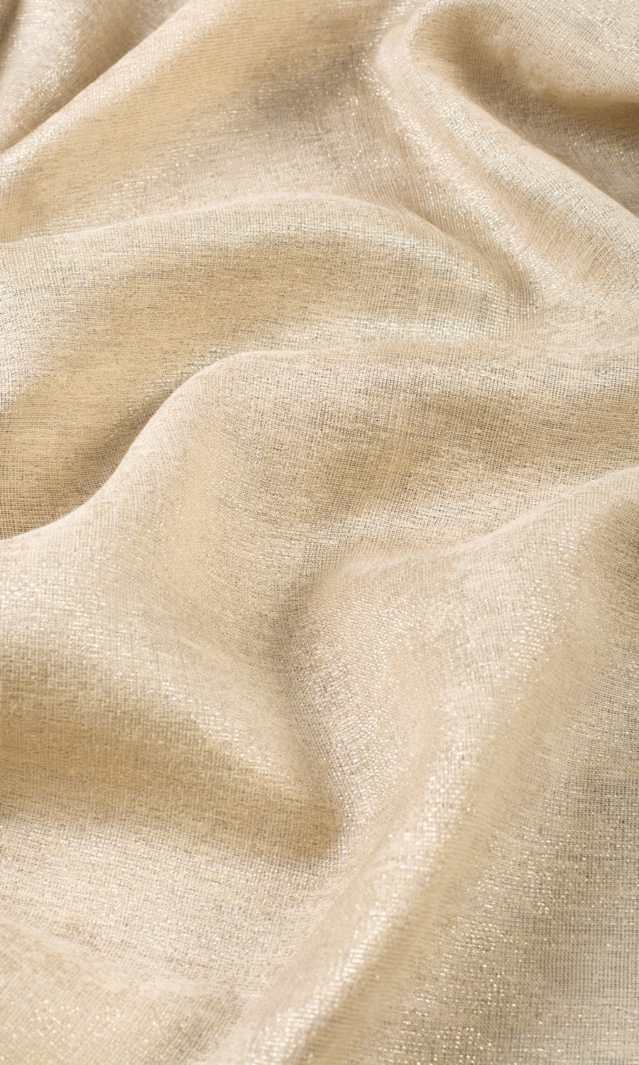 'Custard Touch' is where quiet elegance meets whimsical shimmer. Its soft beige tone exudes quiet sophistication, catching the light with a graceful lustre rather than overt shine. Ideal for layered drapes or stand-alone panels, this fabric lends a sense of depth and glamour to interiors - without overwhelming them. 'Custard Touch' is perfect for chic city apartments, twilight-toned bedrooms, or refined powder rooms where softness and sheen belong in equal measure.