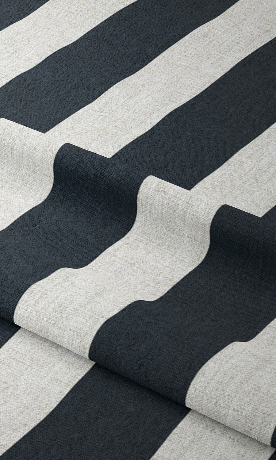 'Drift House' is that classic dark navy blue-white striped fabric that you would expect in any traditional rustic home. And yet, its no-fuss silhouettes appeal to modern decor styles that play on clean lines and stark contrasts. This versatile striped fabric can go with nautical themes and moody man-caves, both in traditional and modern homes.