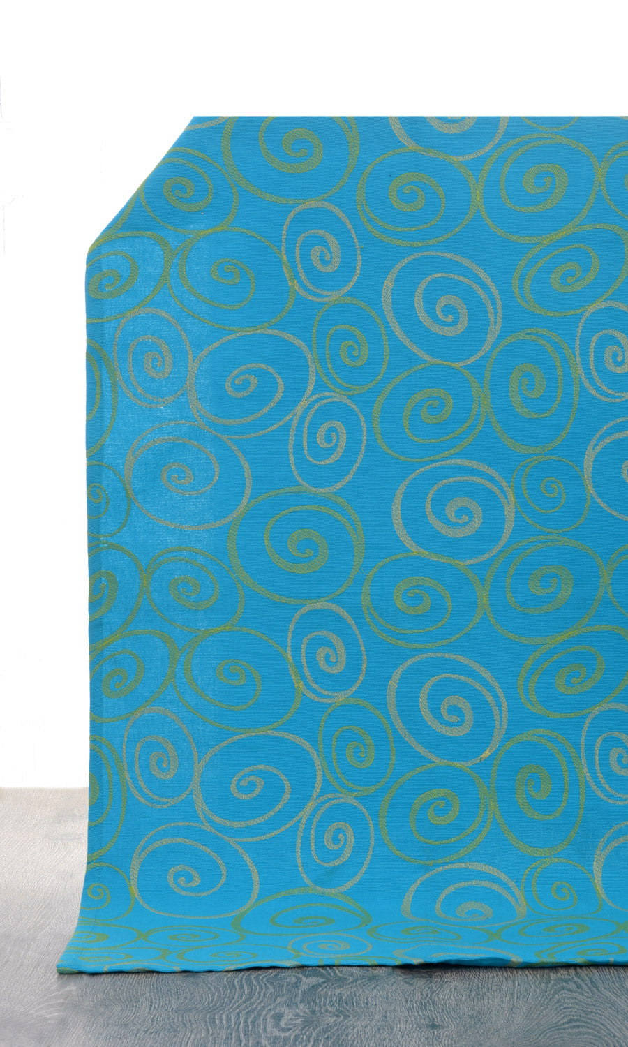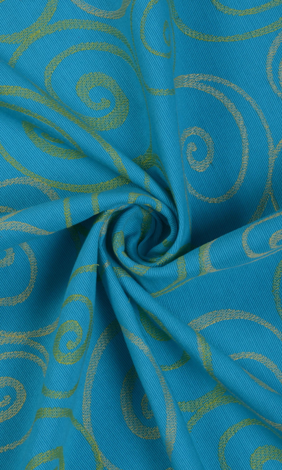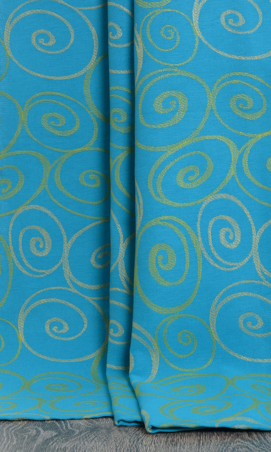 - Its aqua blue energized by crisp chartreuse green accents in a rich woven texture