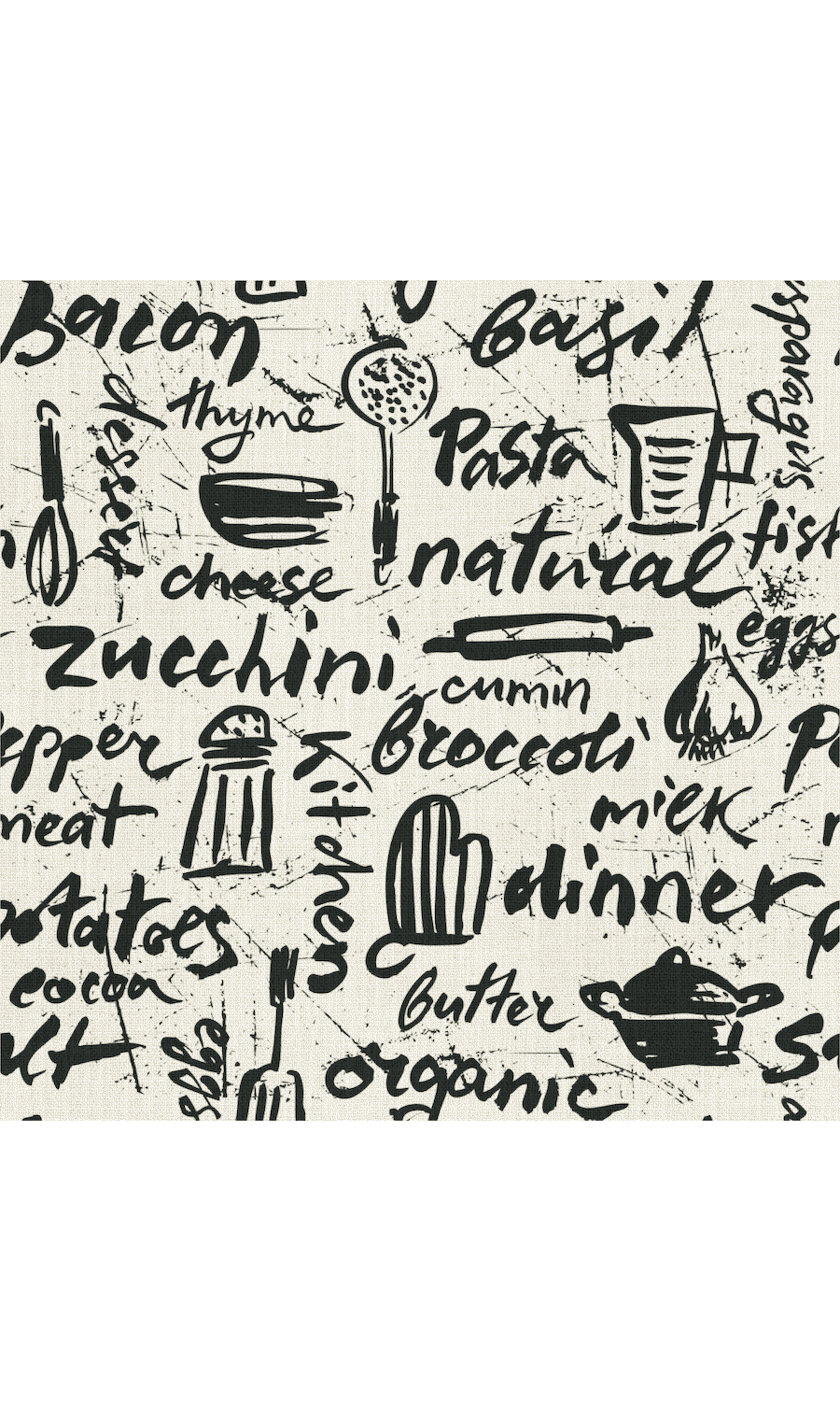 A chefs muse, a food lovers delight, and a kitchens perfect finishing touchForaged Fare is a fabric brimming with culinary personality. Adorned with whisks, pots and words like bacon, zucchini, and sauté, this fabric brings the heart of the home to life. The fun, handwritten script peppers the design with just the right bit of cosiness. Its versatile neutral palette works with a range of colours, letting you spice up your space without overpowering it. This fabric is the ideal decor garnish for dressing up breakfast nooks, adding warmth to dining spaces, or infusing kitchens with a dash of charm.