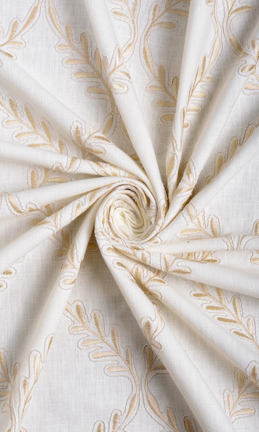 Botanical and geometric motifs merge in 'High Sonnet' to render a nature-inspired aesthetic with a modern flair. Its delicate leaf vines surging upward in a lattice pattern carry curvy details, embroidered texture and subtle colour contrast for visual allure. Enriched by both the airy elegance of pure linen and the structural quality of polyester, this fabric promises to drape smoothly, fall elegantly and fold neatly.