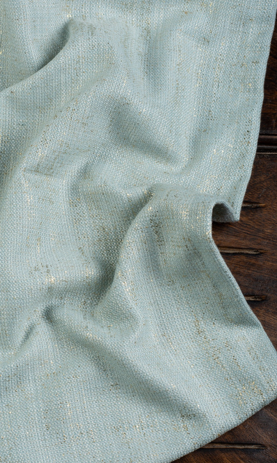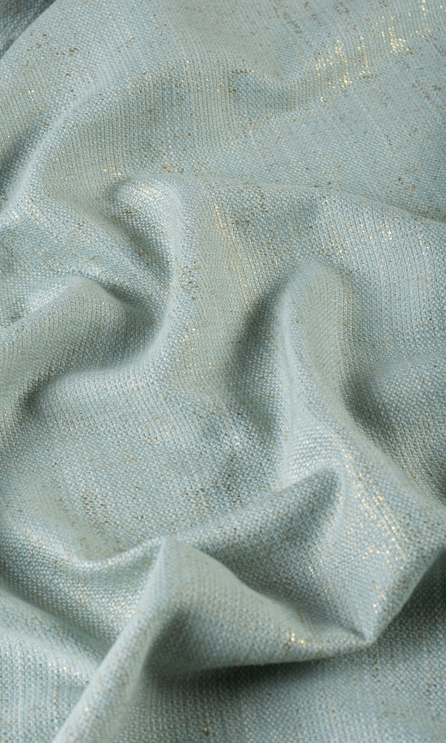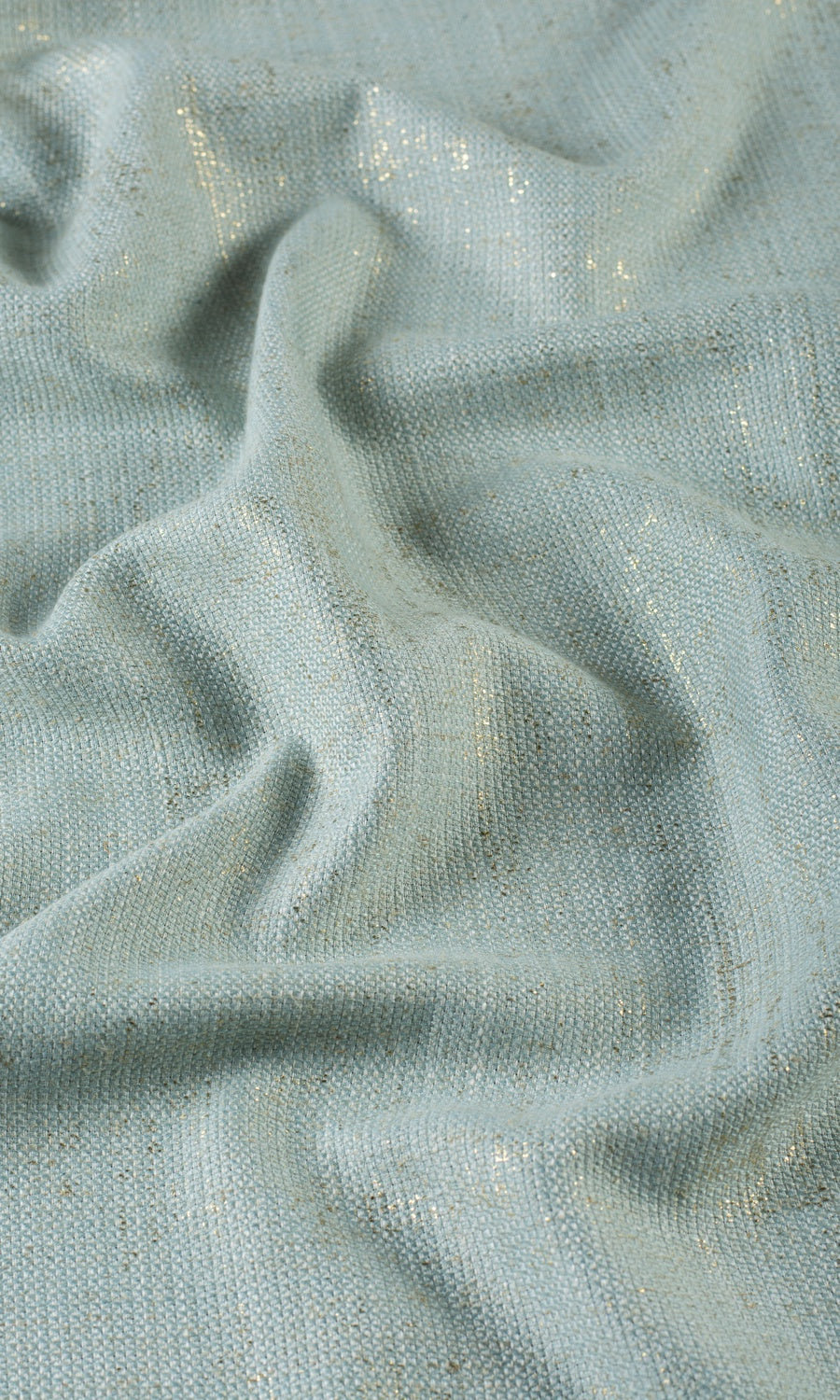 Not your ubiquitous plain blue fabric, but a bespoke beauty that comes with a regal overtone of glimmering gold hiding in its dabbled pattern! 'Luminous Peace' offers a sure-fire way to spruce up a breezy coastal abode with a tinge of glam. Enjoy this visual treat and crown your home with 'muted resplendence' while trusting its linen-blend composition for durability and dimensional stability.
