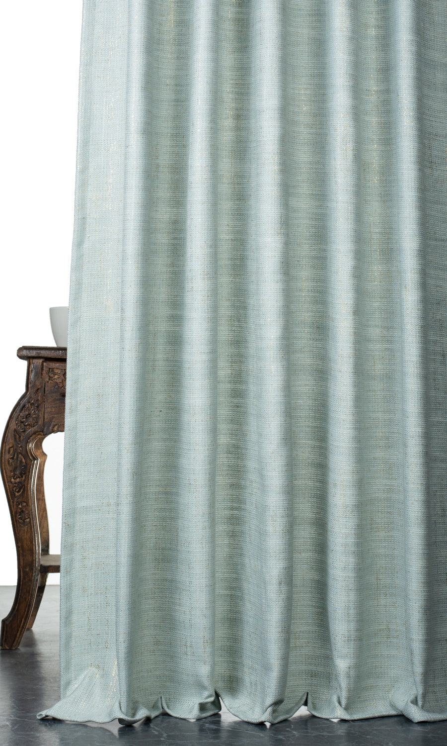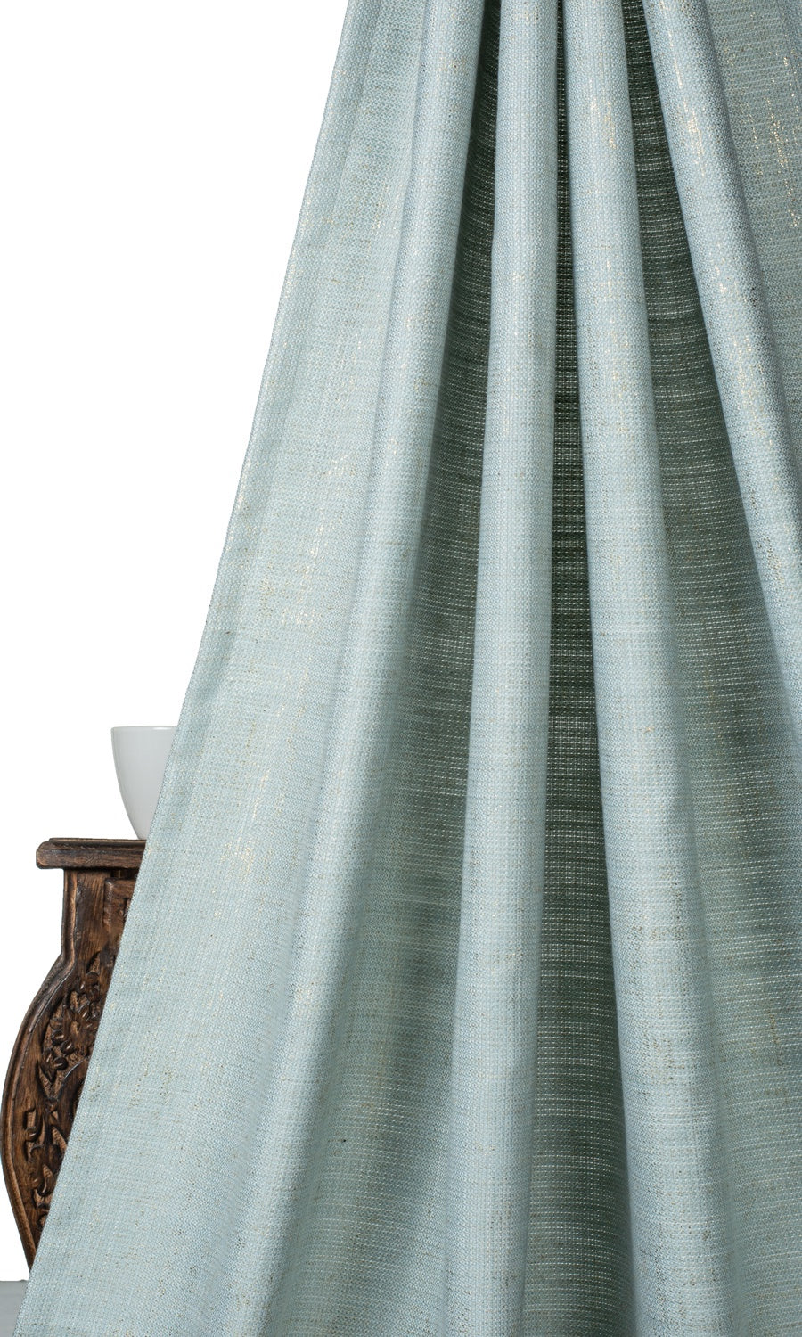 'Luminous Peace' Metallic Print Poly-Linen Custom Drapes (Powder Blue)