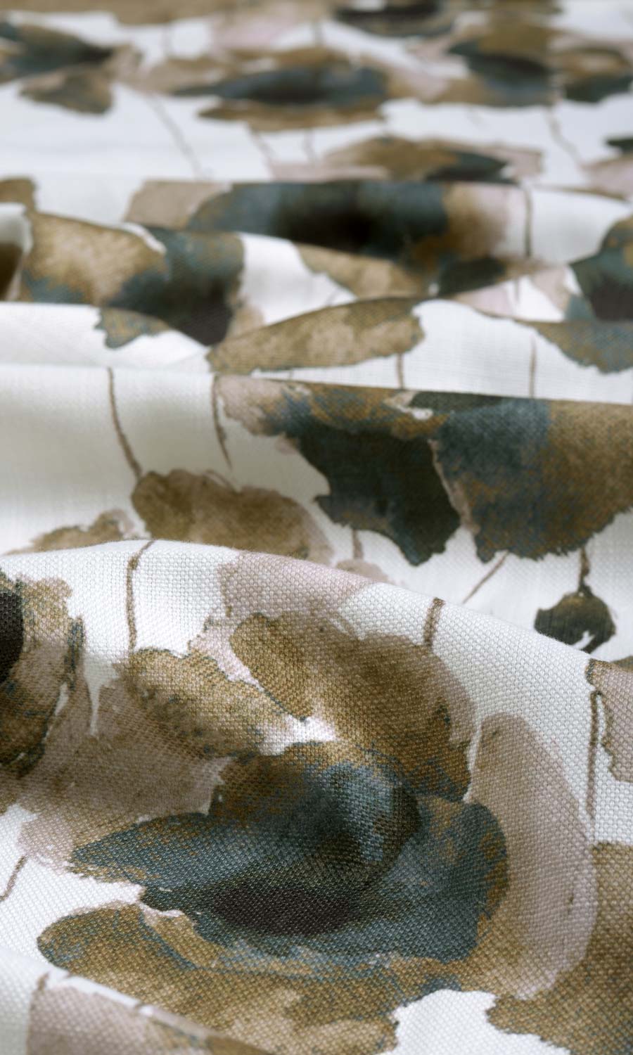 'Mermaid Pond' is a compelling piece that combines floral allure with the quiet allure of neutral colours. Depicting the painterly sight of the Himalayan poppies in a pared-back palette and feathered watercolour silhouettes, this fabric weaves a moment of stillness, charm and peace in the decor. It can be the finishing touch of a modern living room, a special feature of a guest bedroom or the fitting adornment of a patio door.