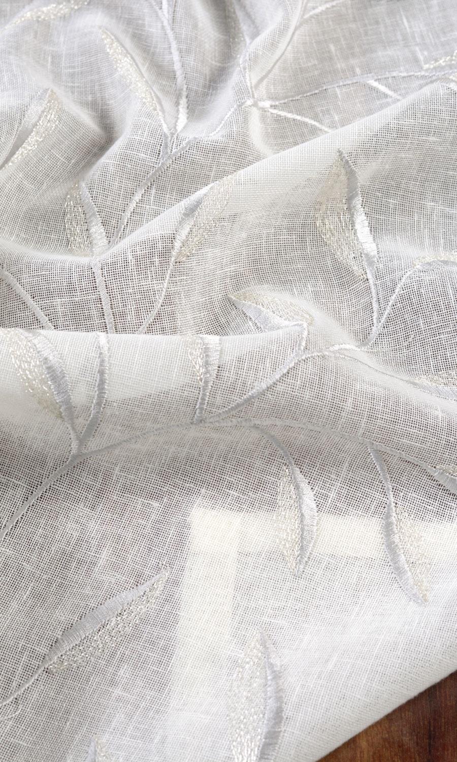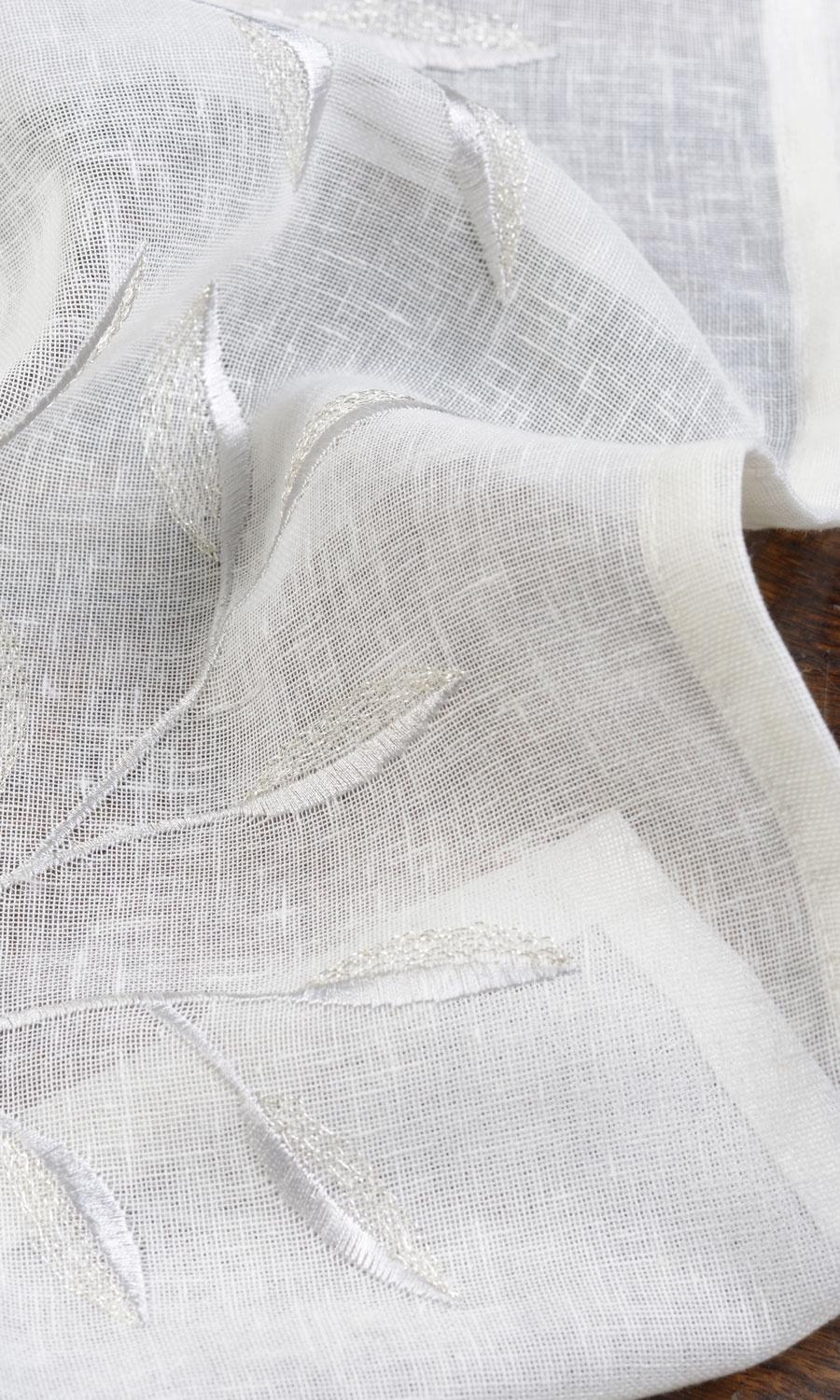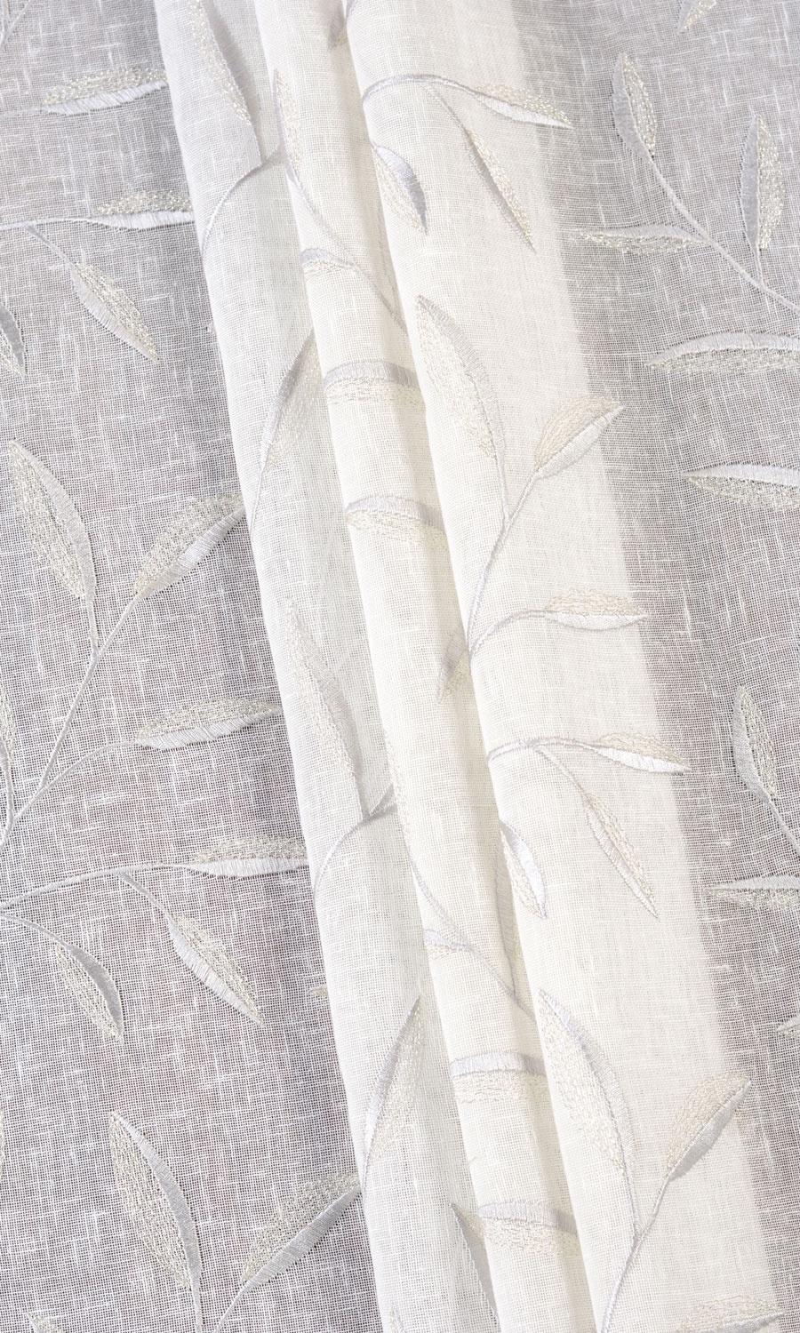 A moment stolen from a whimsical fairytale or a misty countryside view frozen in time! 'Nuray' offers elegant floral vines in a soft palette of rustic white slubby linen and subtly radiating gray embroidery. Its serene colours and light-filtering base make it the perfect piece to pair with blackout drapes in a serene bedroom or as standalone treatment in a minimalist living room where daytime privacy is key.