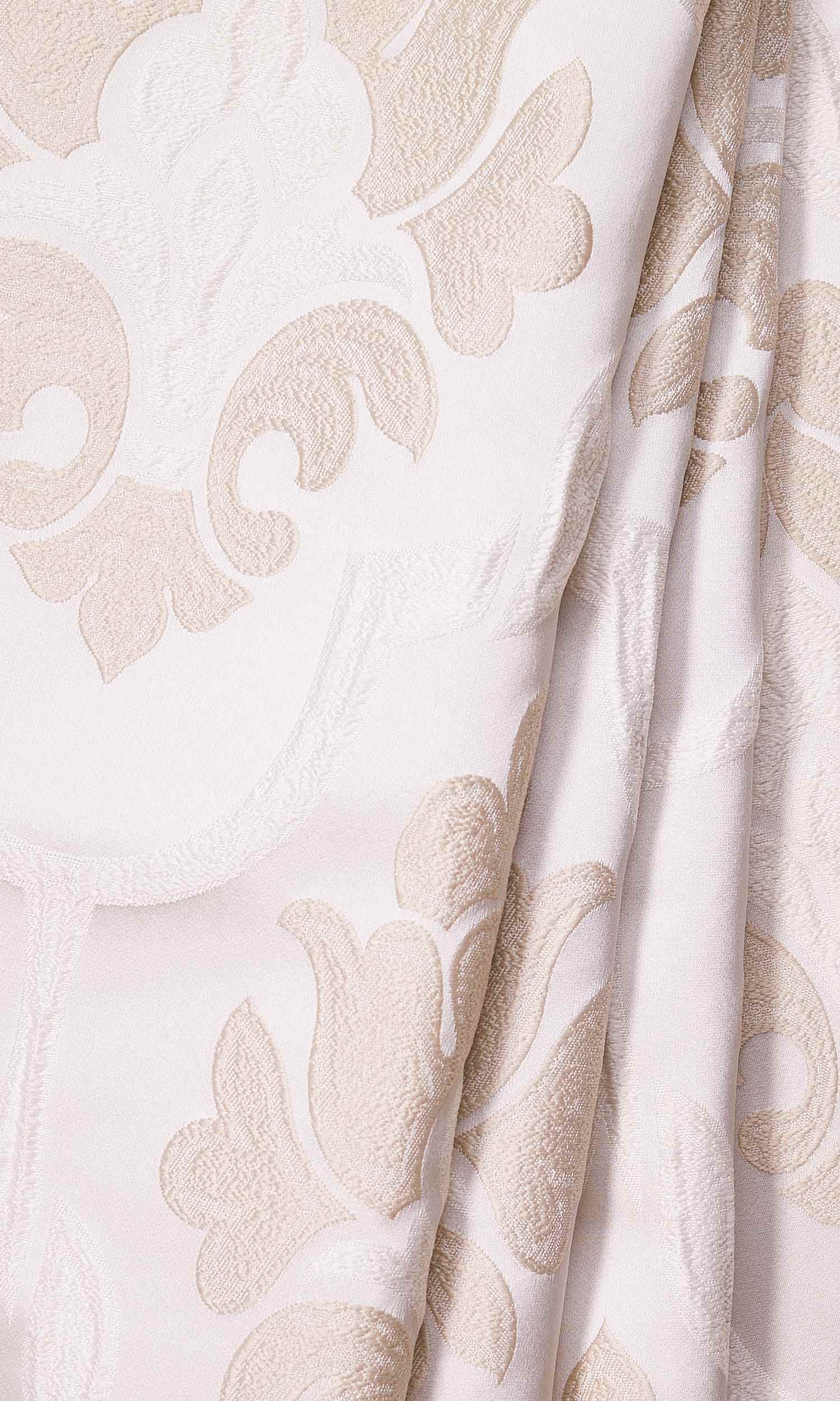 Marrying a traditional motif with a minimalist palette, 'Rising Tide' offers the lofty beauty of damask in a palatable way for present-day traditional/transitional homes. With its overscaled pattern, this beige-cream drapery promises to soothe any colour-heavy traditional space with its neutral tones and understated grace. Dress up a formal living room or a swoon-worthy guest room with this winsome drapery's artful beauty, rich texture and gentle sheen.