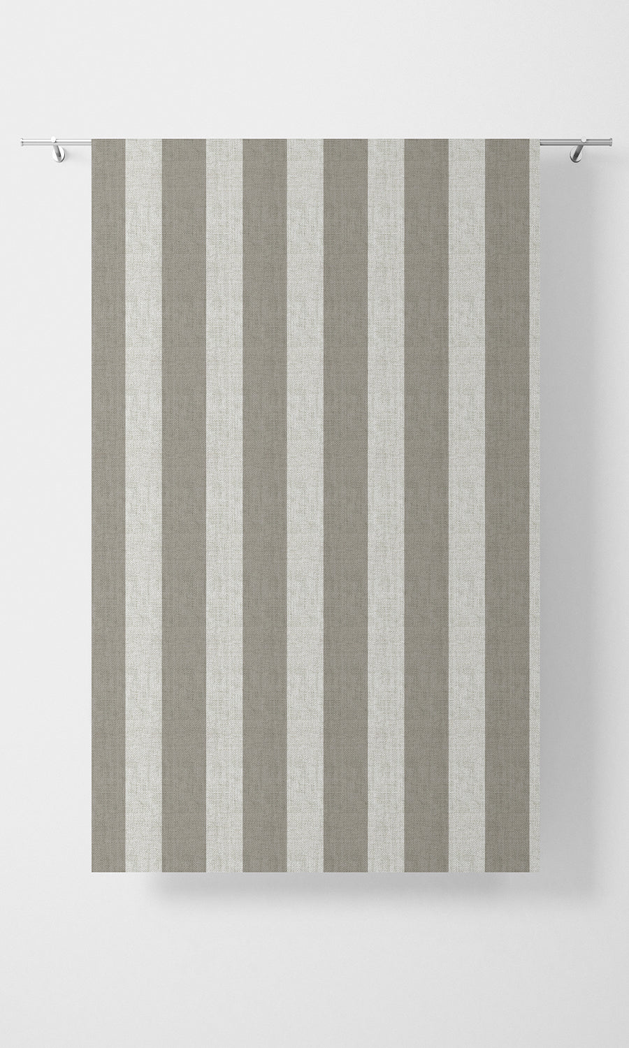 Featuring wide stripes of even width in a grey-white palette and textured finish, 'Slovenia Ash' offers a timeless aesthetic with a modern edge. Its compelling scale and quiet hues make it a great addition to any room looking for a bold piece sans the vibrance of saturated hues. Let it team up with stonewashed linens, aged oak flooring, and woven jute rugs in relaxed settings, or pair it with black metal accents, marble surfaces, and structured upholstery for a crisp, modern look.