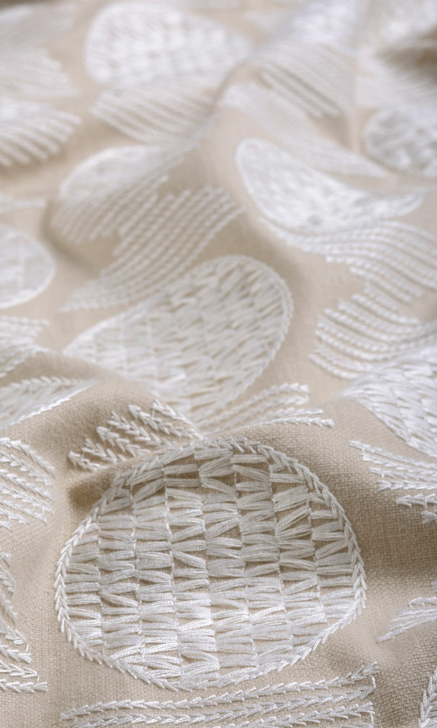 - Beautifully embroidered curvy motifs that look soft and light-hearted