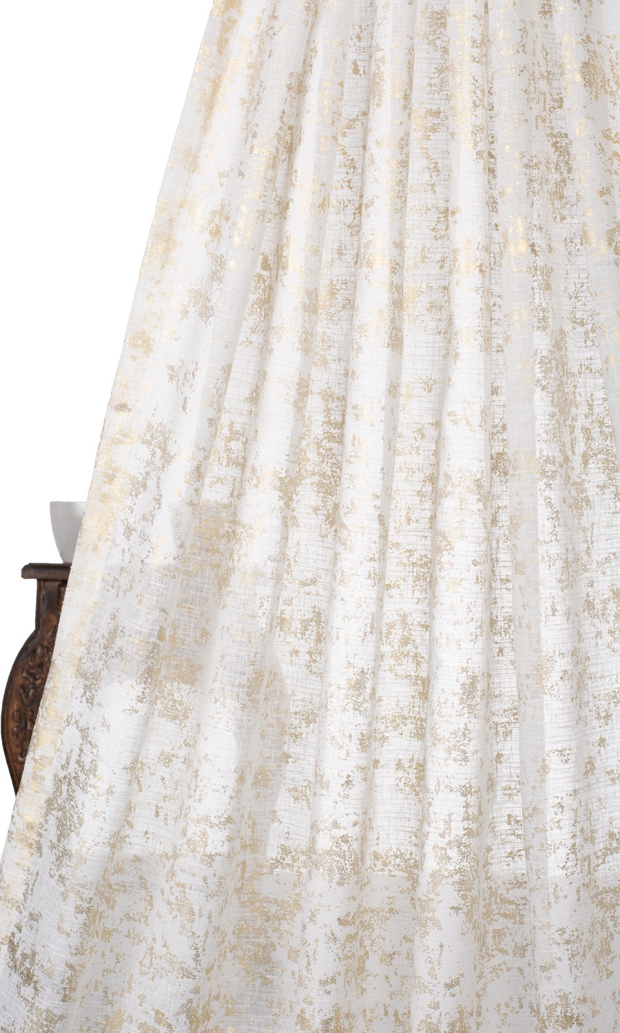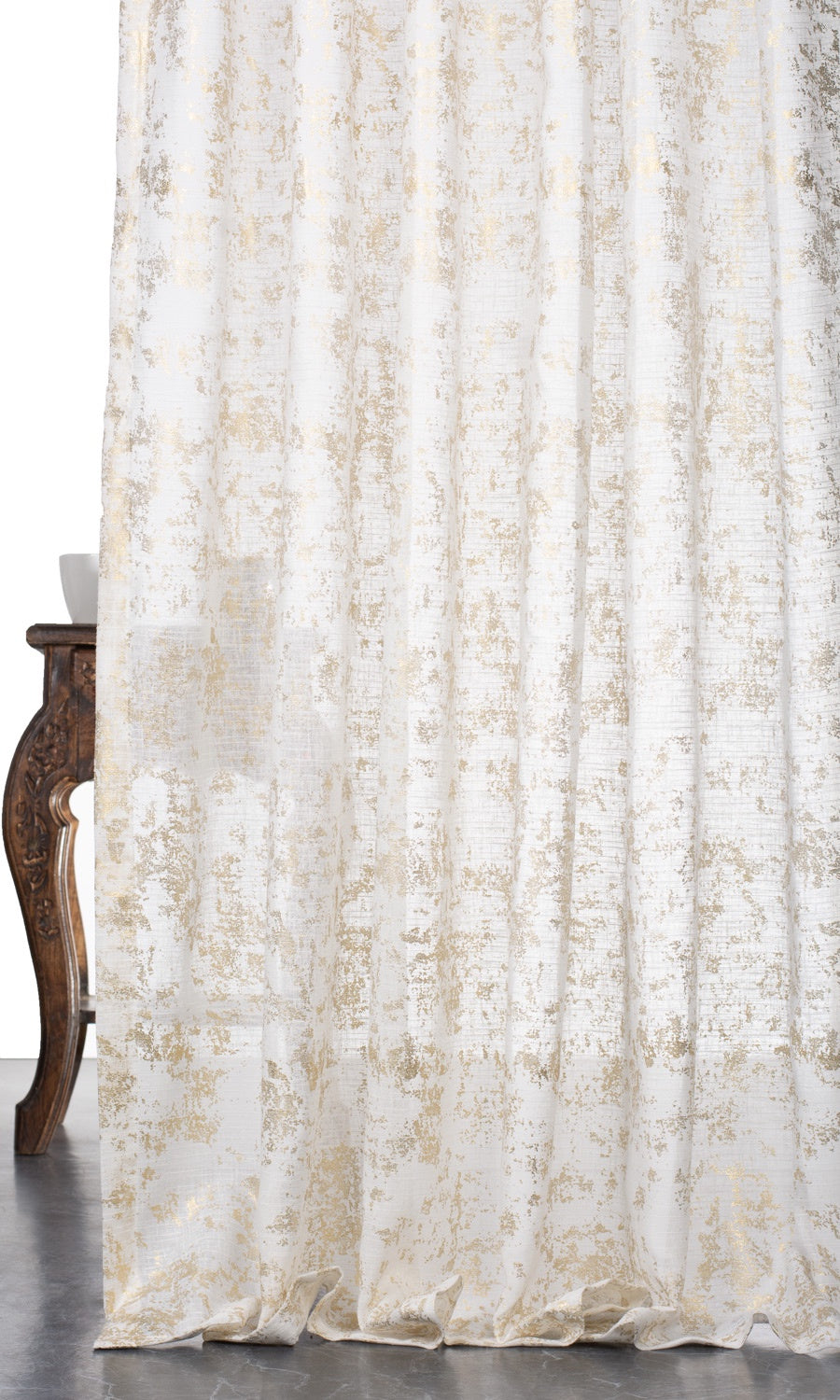 If you want to rely on the effortless glamour of gold for a pizzazz-y formal room, you can't help falling for 'Soft Lumiere's aureate touches on warm white. This diva can fine-finish any room that revels in ritzy themes and the warm glow of brass accents. And this visual treat is brought to a full circle with the golden sunshine it lets in through its sheer weave.
