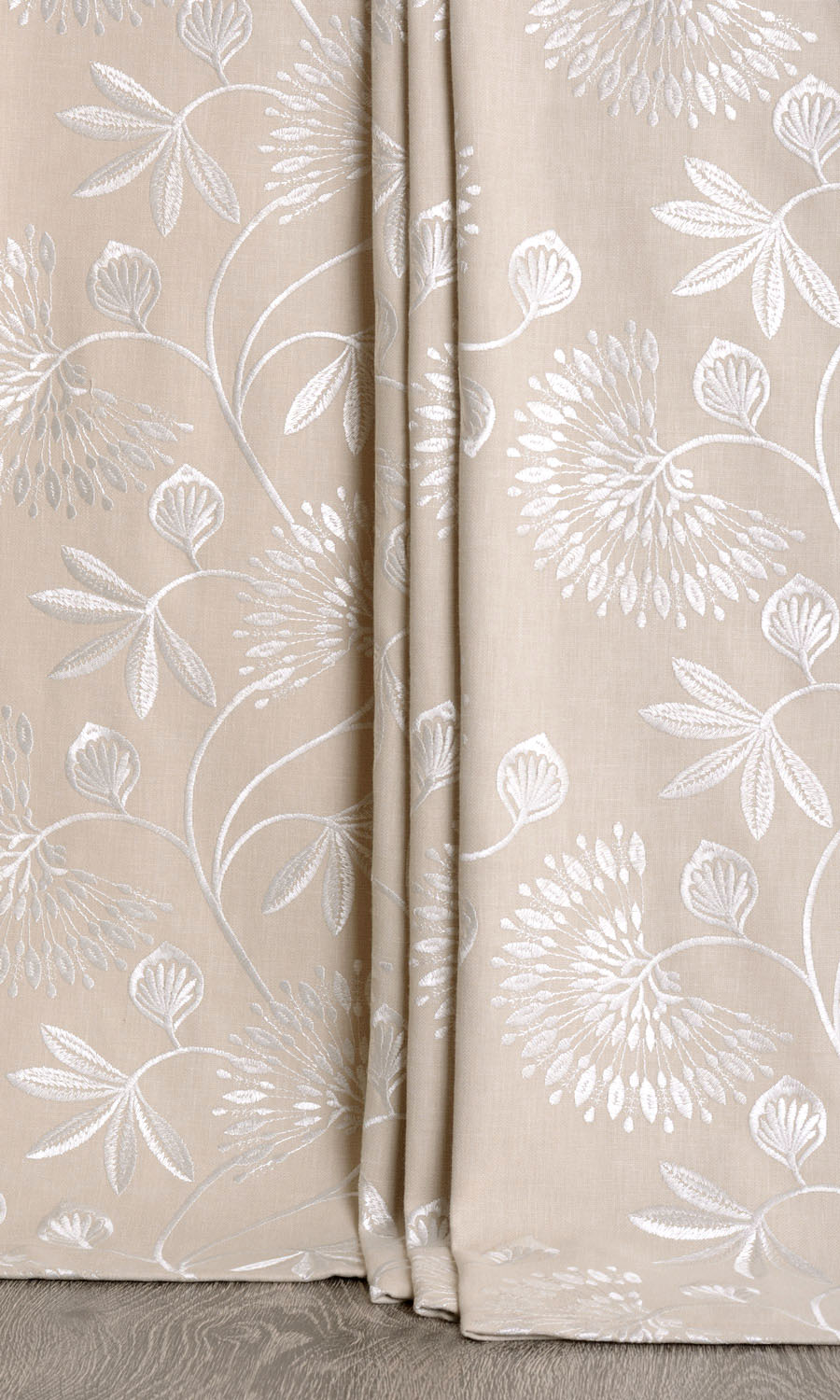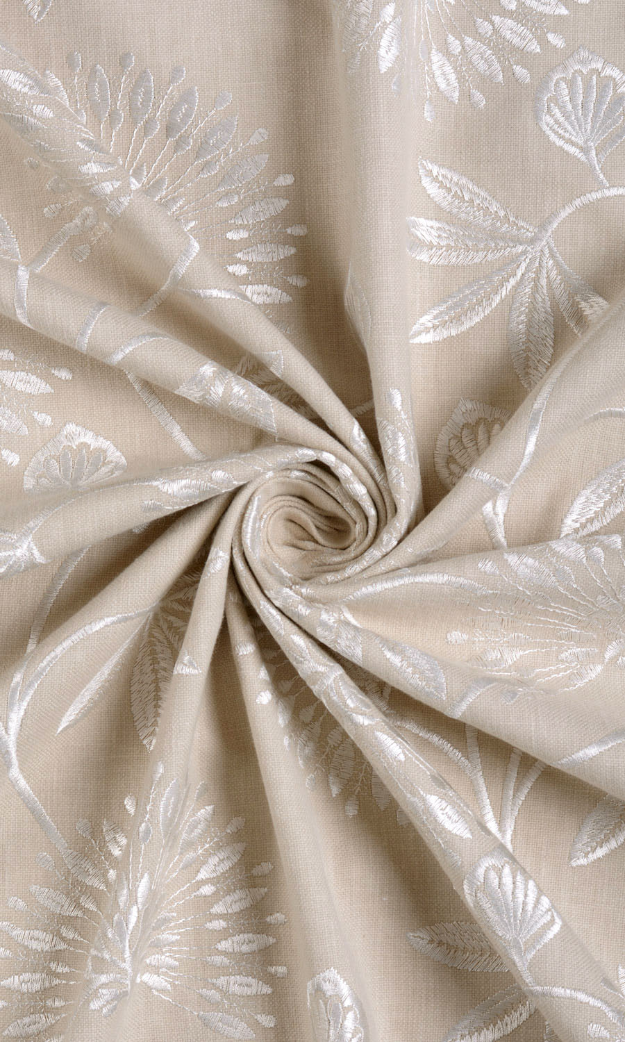 If you have a penchant for floral motifs, you may find 'Sun Glint's tastefully embroidered patterns disarmingly charming. Dress your home with a nature-inspired theme and palette with this elegant piece from our Artisan collection. With its climbing vine motif, it will woo the eye upward and optically elongate the room as a bonus point.