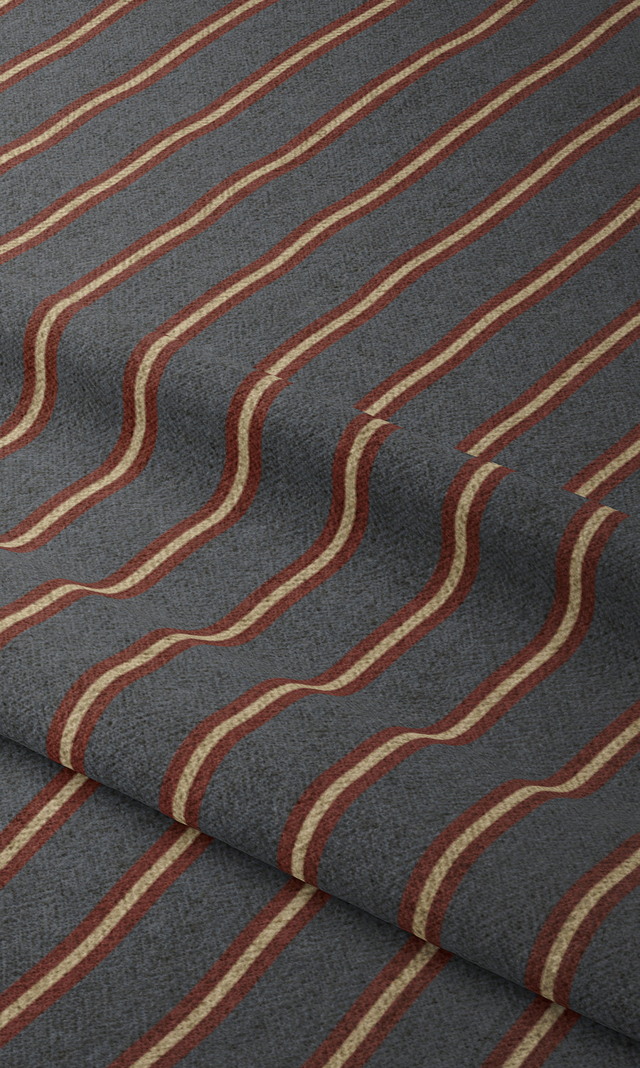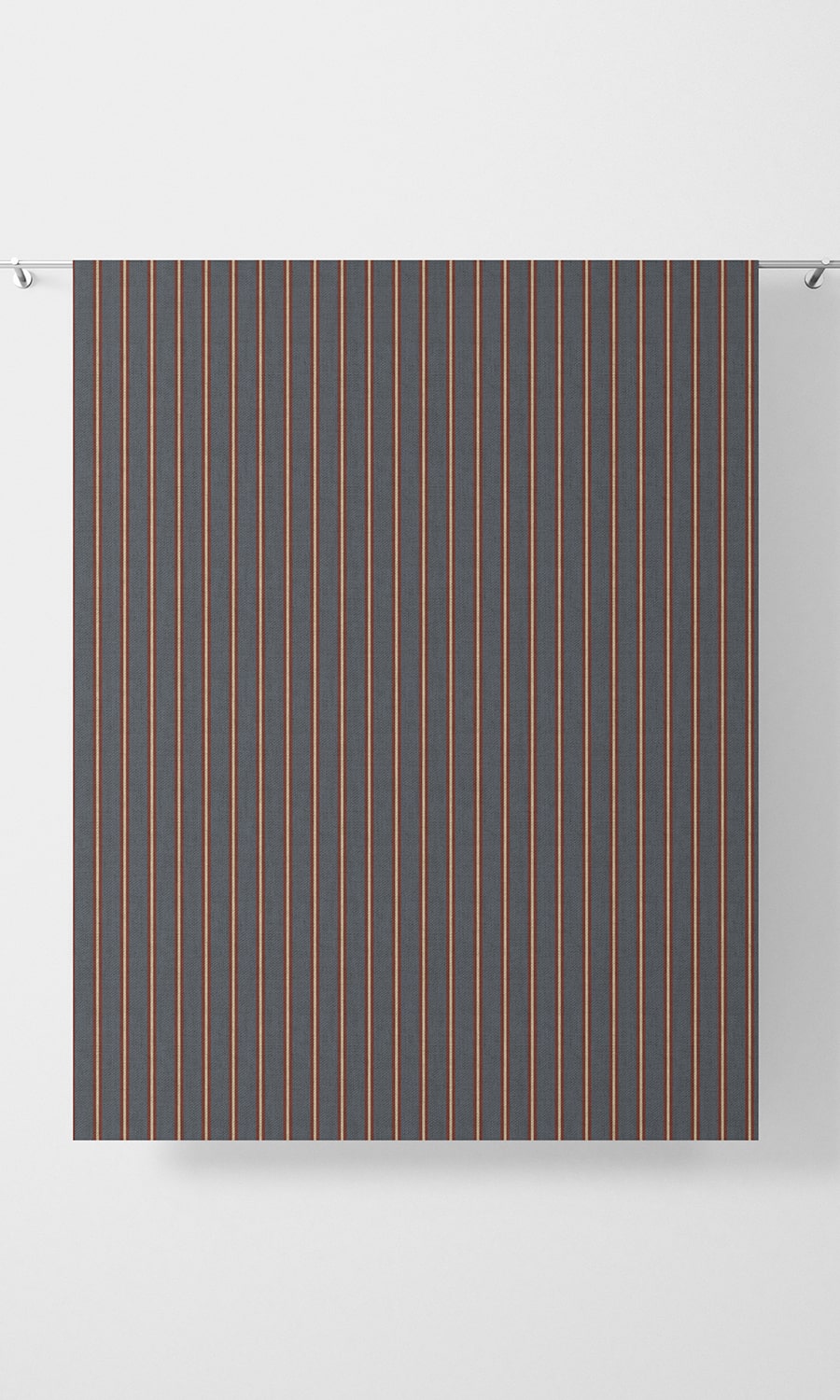 'Teak' ties together many moods it is a seafaring, nautical nod with its navy base and city-bound with its cityscape under nightsky evoking red stripes. The deep navy base sets a calm, steady tone, while the vivid red stripes add a sense of pulse and pace. There's movement stitched into this fabric a sense of going places, even when you're standing still. Perfect for study corners, reading chairs, or a boy's room with a love for maps and faraway lands. Pair it with tobacco browns, polished brass, or sailor whites for a look that feels lived-in and a little storied.
