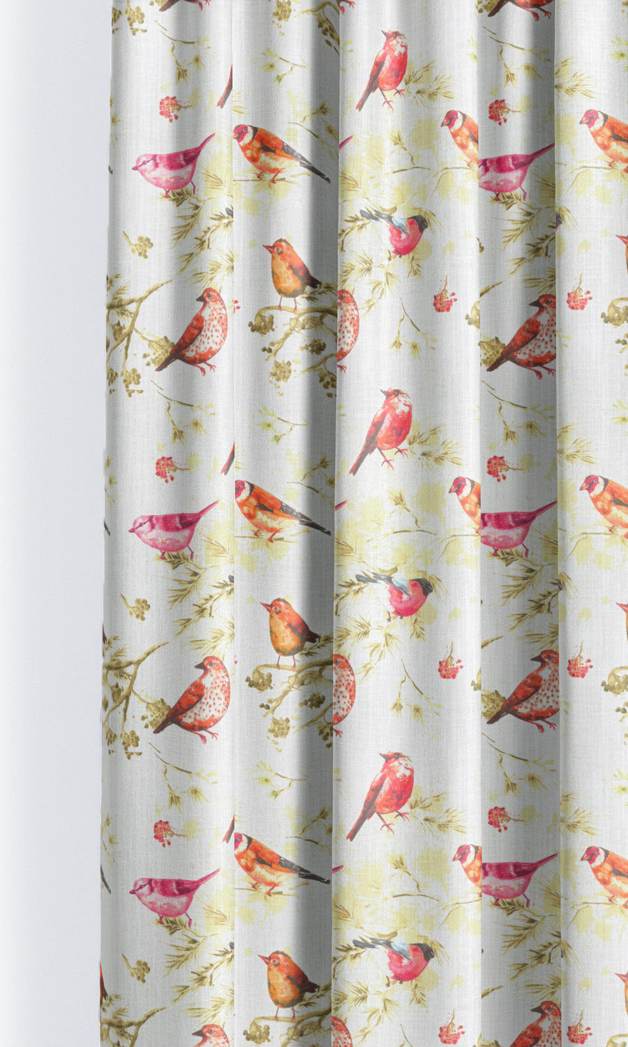 'Toucans' Bird-Print Cotton Window Drapes (Orange/ Pink/ White)