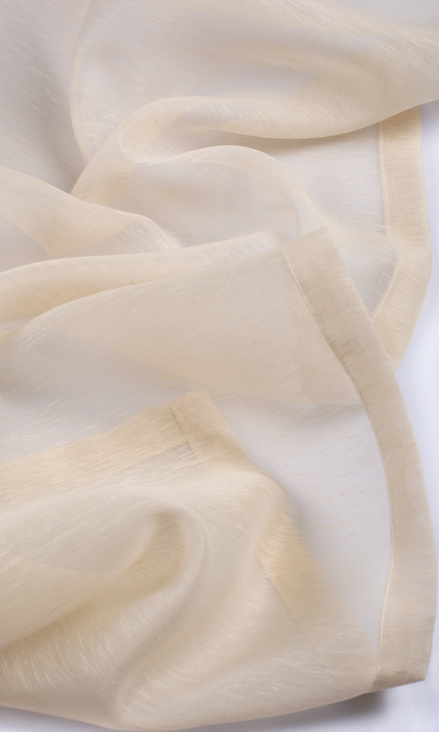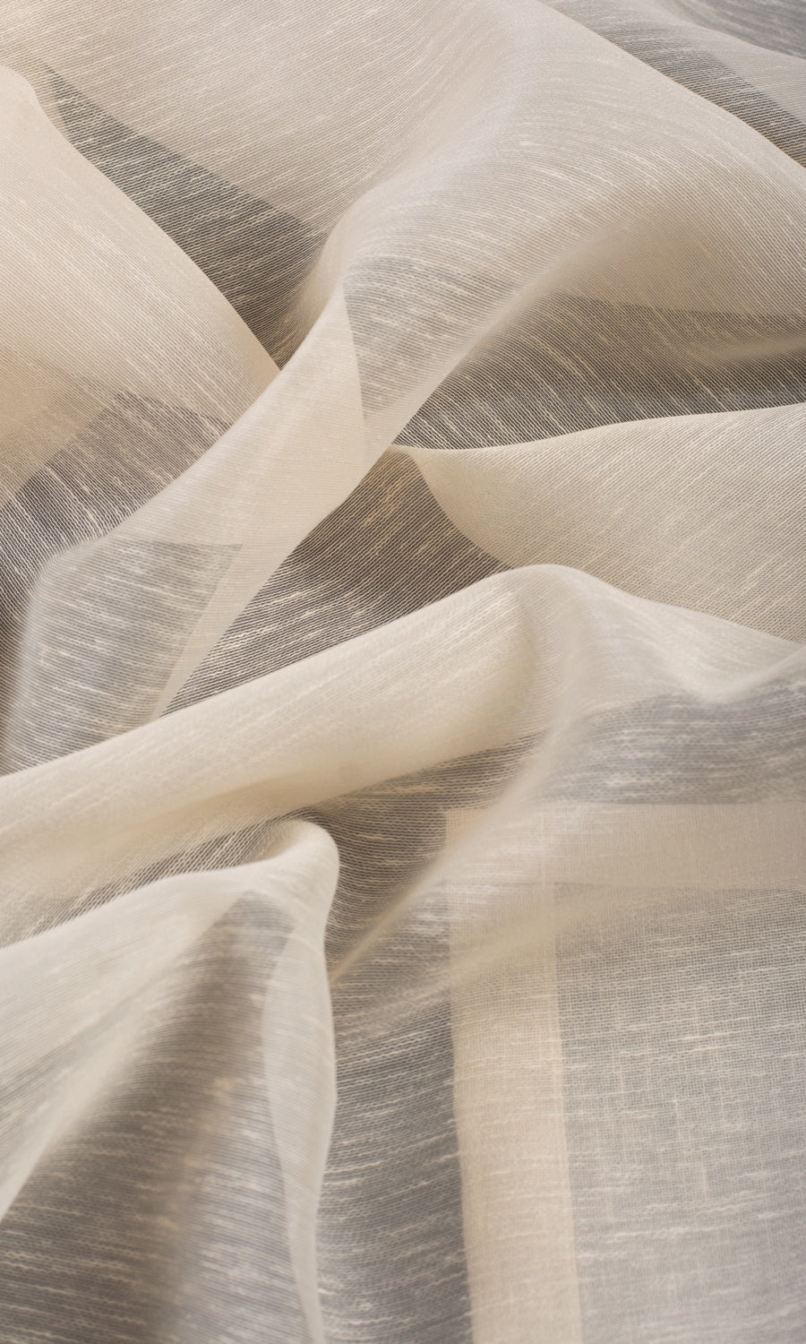 Capturing the soft radiance of early morning light on dew-kissed petals, 'Woodwind' offers a whisper-light ivory sheer for interiors that exude grace and stillness. Its hushed hues lend an ethereal touch while its transparent weave transforms light into a gentle haze. Let it dress a glass-paned living room, gently frame a little kitchen window or wrap a bed canopy. A calm, collected charm is assured.